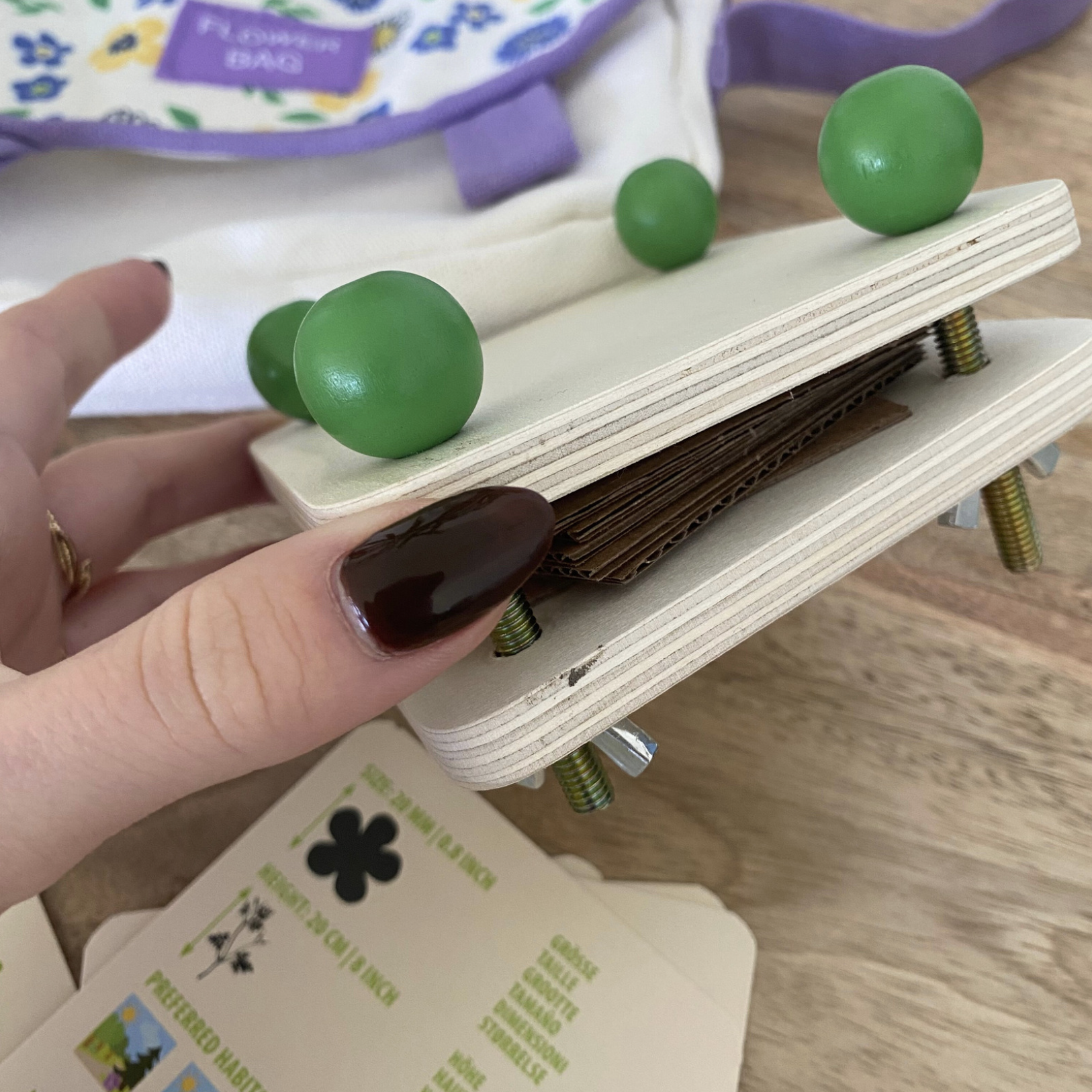 Vous pouvez également (seulement si vous en avez l’autorisation) cueillir certaines fleurs et les faire sécher grâce au petit presse fleurs.