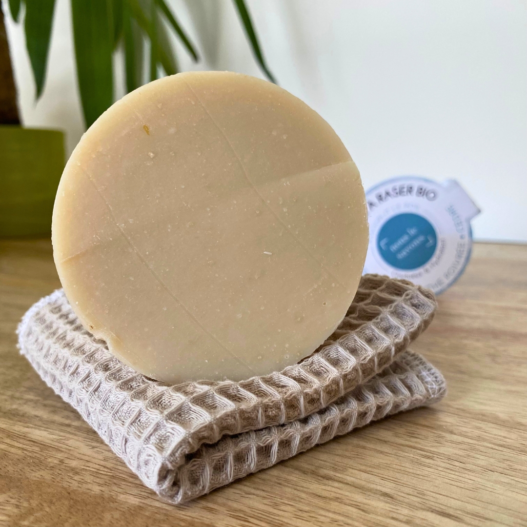 Ce savon de rasage bio est idéal pour la barbe, les jambes, les aisselles, il assure un rasage tout en douceur.