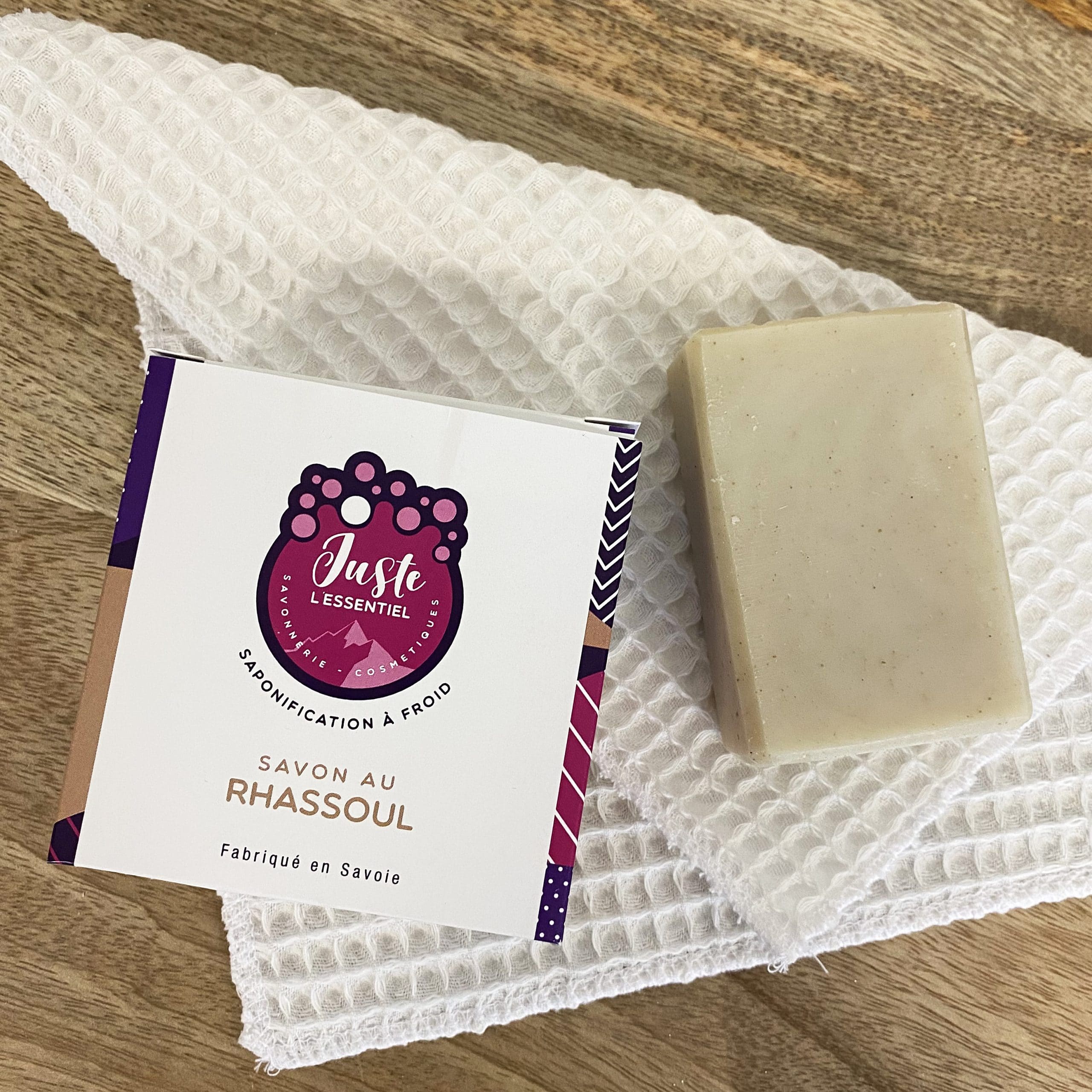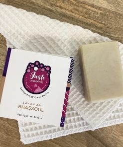 Ce savon est composé d’huiles végétales bio d’Olive, de Coco, de Ricin, de beurre de Karité bio, d’hydroxyde de sodium, d’eau et de Rhassoul qui est une argile marocaine utile pour un nettoyage de peau en douceur.