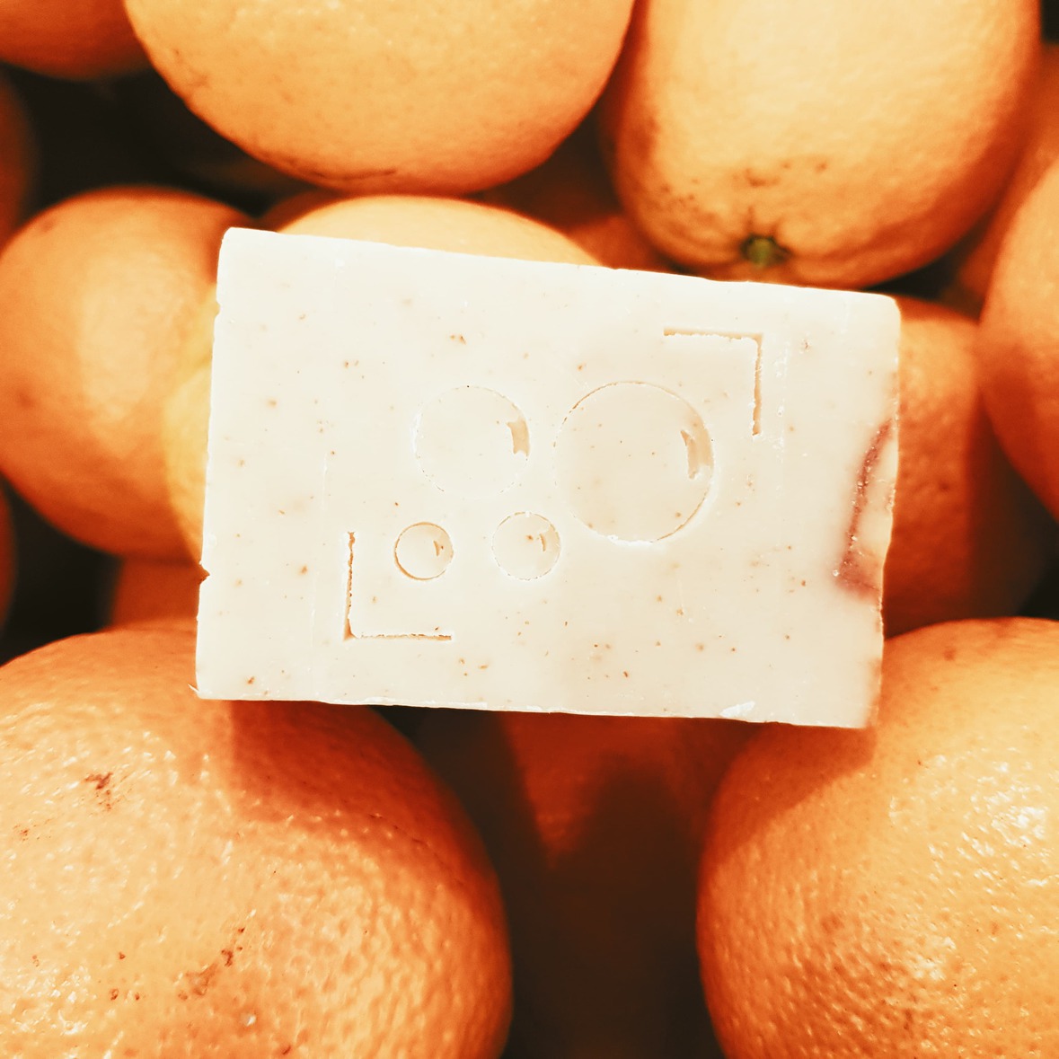 Ingrédients INCI: Sodium sunflowerseedate, sodium cocoate, sodium shea butterate, sodium rapeseedate, sodium beeswax, glycerin, aqua, citrus aurantium dulcis oil, citrus medica limonum oil, citrus sinensis peel powder, citrus limon peel powder, pinème², limonène², terpinène²