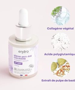 Le Collagène végétal, en pénétrant profondément dans l’épiderme, favorise la réparation et la régénération cutanées, agissant sur la fermeté, la densité, et réduisant les rides et ridules. Cet actif puissant redensifie la peau, combat le relâchement cutané et atténue visiblement les signes de l’âge.L’acide polyglutamique complète cette action en procurant une hydratation en profondeur, améliorant la souplesse de la peau et réduisant la desquamation. Il surpasse l’acide hyaluronique en retenant l’humidité, renforçant ainsi la barrière cutanée. La peau, repulpée et lissée, devient plus résistante et éclatante.Pour compléter cette formule, un actif 100 % naturel, l’extrait de pulpe de baobab, offre un effet tenseur immédiat et durable. Dès la première application, il lisse les rides et ridules, repulpe la peau et lui donne une douceur souple. Le teint est rafraîchi, le visage paraît moins fatigué, rayonnant de fraîcheur et de vitalité.