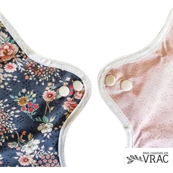 La serviette hygiénique lavable de taille « XL » convient aux flux abondants, notamment la nuit. Elle peut aussi être utilisée en suite de couches.