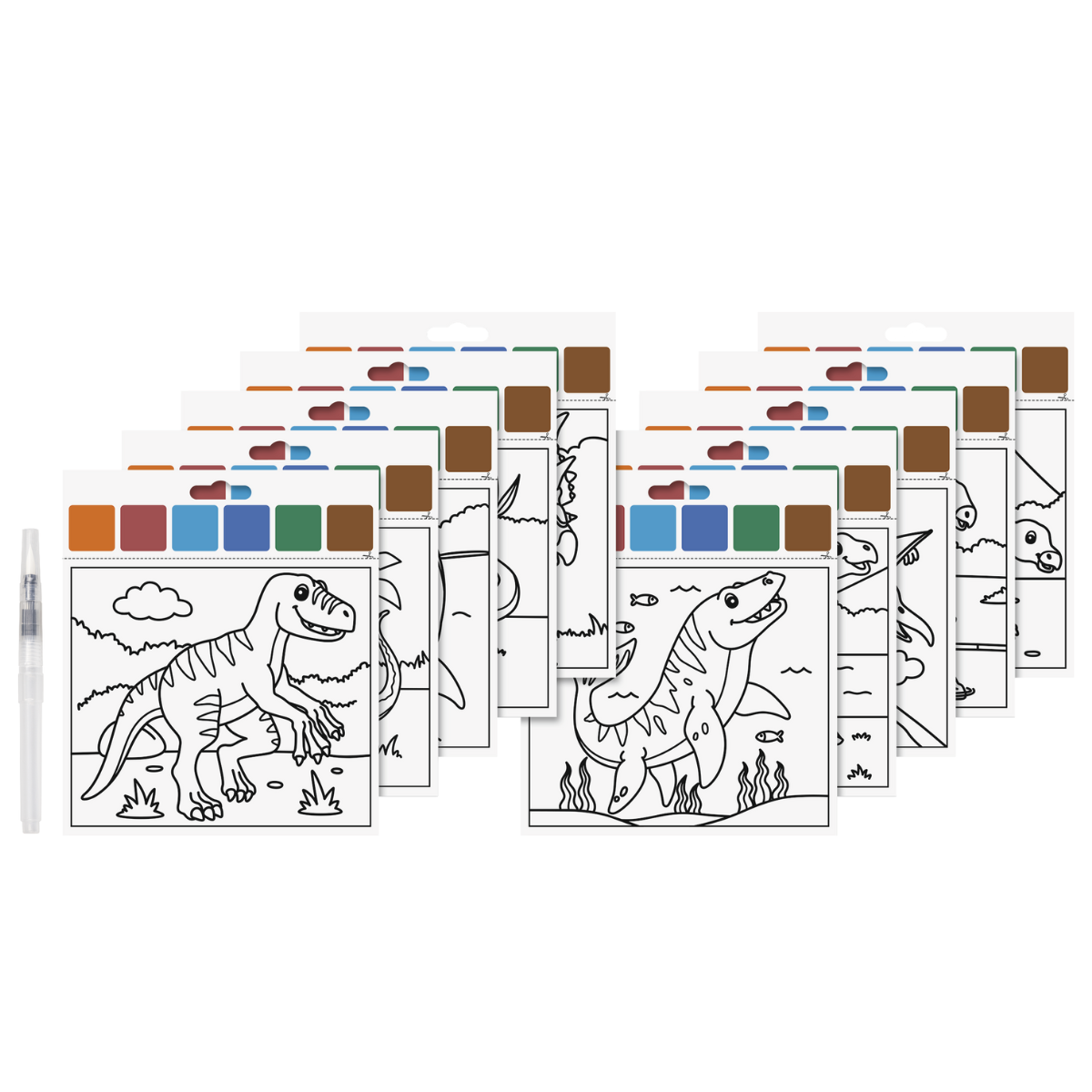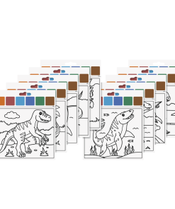 Laissez parler votre imagination avec ce coffret de coloriage sur le thème des dinosaures ! Il contient 10 feuilles décorées de fascinants dinosaures. Grâce aux pastilles de peinture intégrées, il vous suffit d’humidifier le pinceau et d’activer les couleurs avec un peu d’eau pour créer de superbes illustrations selon vos envies.