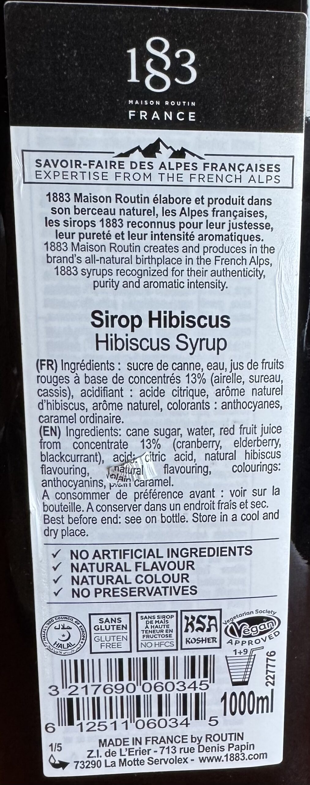 Le Sirop Hibiscus 1 L Routin 1883 est un sirop 100% naturel aux saveurs d’hibiscus, mêlant notes gourmandes et équilibrées.