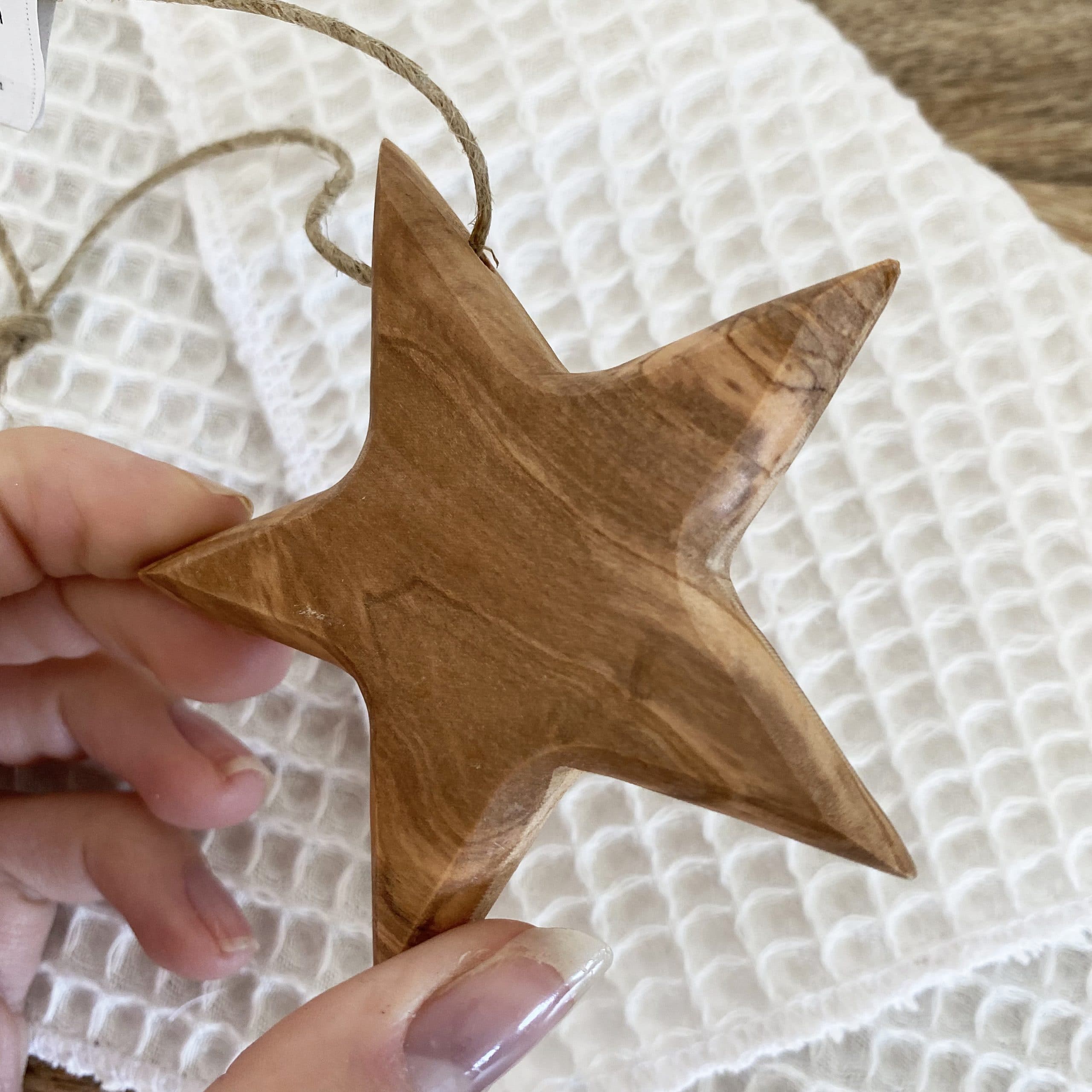 Cette magnifique étoile en bois d’olivier habillera parfaitement les branches de votre sapin.