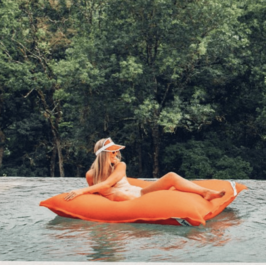 Pouf géant flottant pour piscine aux couleurs vives et estivales.