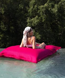Pouf géant flottant pour piscine rose fuschia aux couleurs vives et estivales.