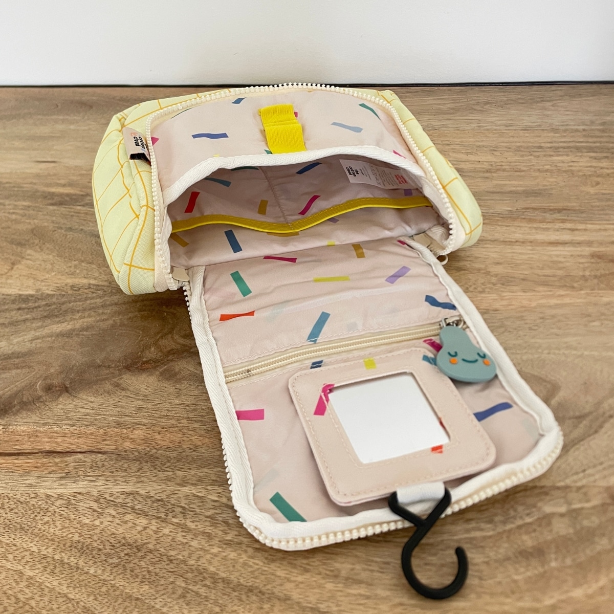 Offrez à votre enfant une trousse de toilette aussi pratique qu’adorable, conçue pour les petits aventuriers, son design ludique apporte une touche de fun aux voyages. Ses multiples compartiments permettent de ranger shampoing, savon et brosse à dents en toute organisation. Fabriquée en rPET recyclé, elle est robuste, durable et respectueuse de l’environnement. Son miroir avec fixation velcro est un atout pratique pour se préparer en toute autonomie, où que l’on soit. Légère et compacte, elle accompagne les enfants partout, pour une routine simplifiée et amusante !