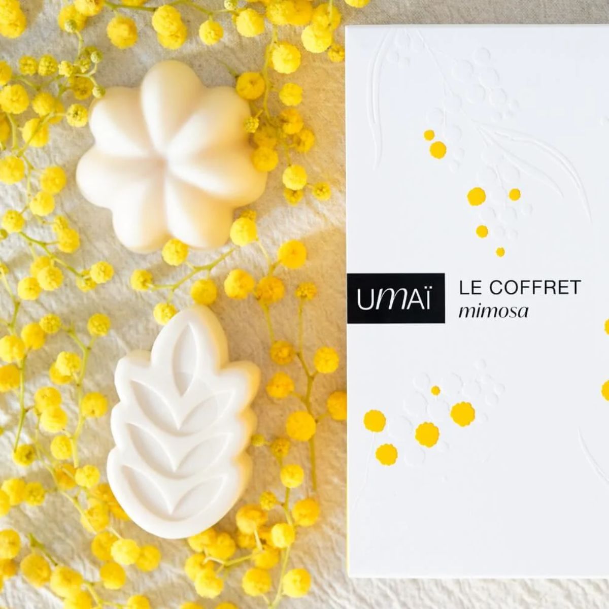 Le coffret Mimosa de chez Umaï est un cadeau idéal pour les fêtes de Noël. Il inclut un shampoing solide enrichi en beurre de caméline et en amande douce, ainsi qu’un soin lavant pour le corps, formulé avec de la glycérine végétale et de l’inuline. Ce soin nettoie la peau en douceur, l’apaise et l’hydrate en profondeur.