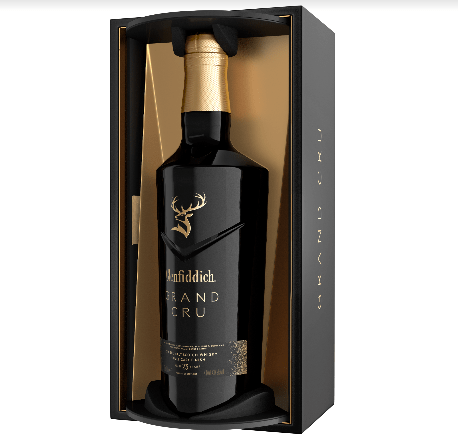 En effet, c’est un assemblage de deux vieillissements : une partie a vieilli 23 ans en ex-fûts de Bourbon, une autre partie pendant 23 ans en ex-fûts de sherry. Une fois assemblés, les whiskies profitent d’un finish de 4 à 6 mois en fûts de chêne français ayant contenu des grands vins français (d’où le nom de Grand Cru que porte ce Glenfiddich).