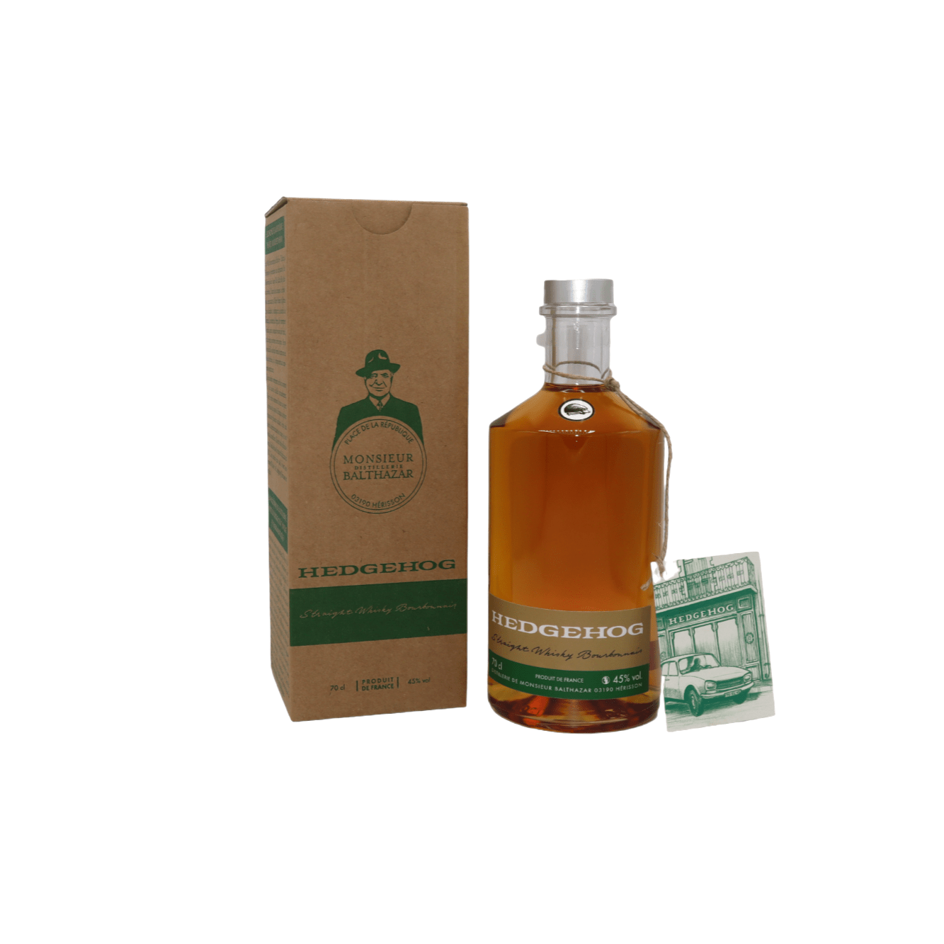 Cette distillerie se situe dans l’Allier, à Hérisson, dont la traduction est « Hedgehog ». Aussi, c’est là qu’Olivier Perrier, enfant du pays surnommé Monsieur Balthazar, commence à distiller et produire du whisky pour son bon plaisir en 1984.
