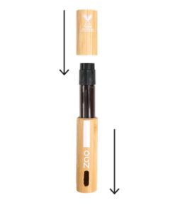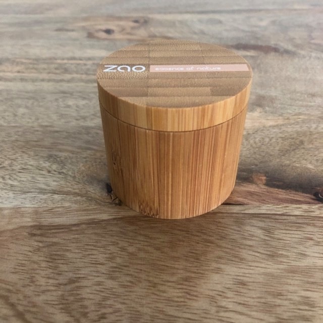 le couvercle du pot en bambou. Exercez une légère pression avec le pinceau kabuki 701, afin d’imprégner les poils de poudre. Appliquez le mineral silk sur le visage en faisant des mouvements circulaires.