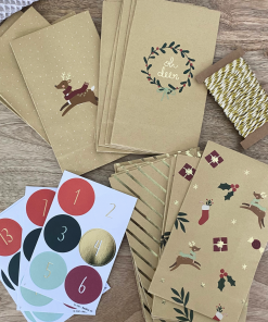 Kit pour faire son propre calendrier de l’avent en kraft et doré