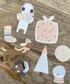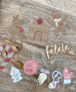 Kit d’emballage cadeaux (étiquettes, stickers, décorations, cordelettes) pastel de Noël